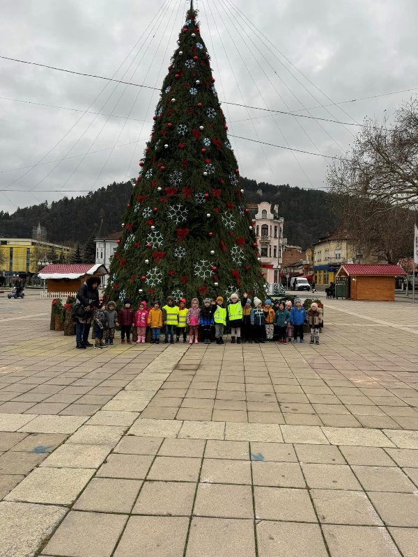 След това разгледаха красивата празнична украса на площад "Велбъжд" и се завърнаха в детската градина.