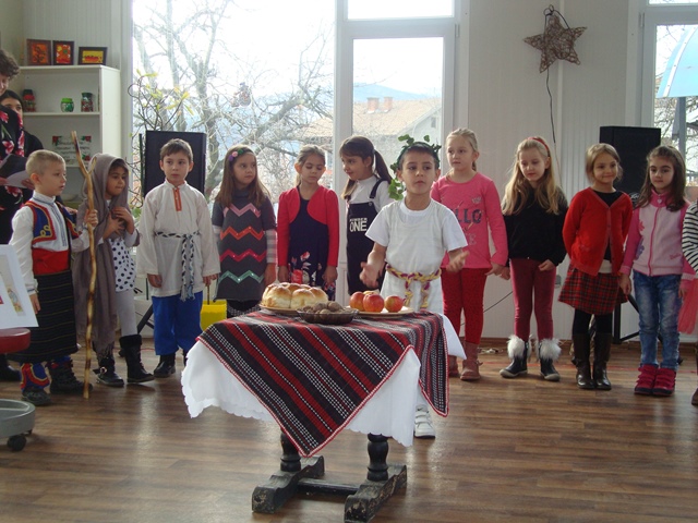 Ритуалът на посрещането и даруването на коледарите също беше представен автентично и по детски чисто.