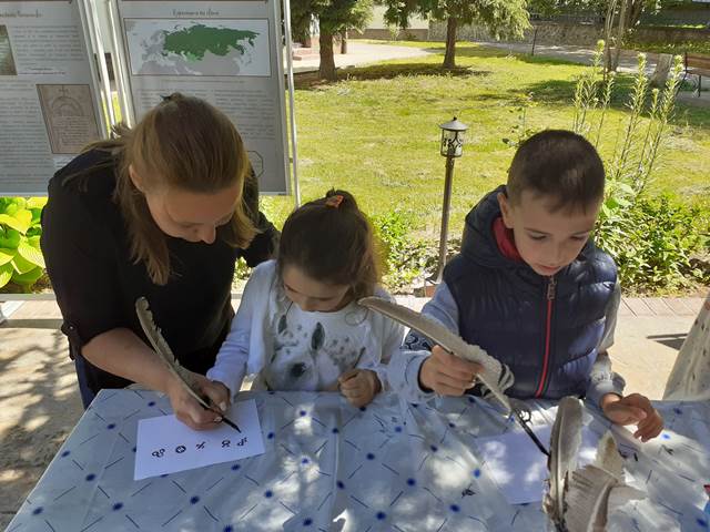 В дните от 16 до 20 май 2022 година децата от нашата детска градина разгледаха организираната изложбата. В двора на храм "Св. Димитър Солунски" - кв. Капията, с благословението на Негово Светейшество Софийския митрополит и патриарх Български Неофит, децата от ДГ "Славейче" се запознаха с живота и делото на Св. братя Кирил и Методи и на техните ученици, с личността на Преп. Паисий Хилендарски, както и пробваха различните методи на писане на нашите предци.