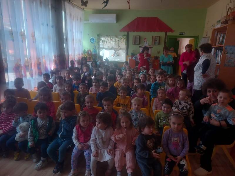 В началото на месец април 2023 година децата от групите „Джудже“ и „Мак“, "Дребосъчета", "Мечо Пух", "Брезичка" и "Калинка".получиха подарък - букет от незабравими емоции с програмата, която представиха двамата артисти – театър, шеги, закачки, музика и танци.