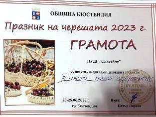 ДГ "Славейче" участва в първата изява от Празника – кулинарни изкушения с череши.