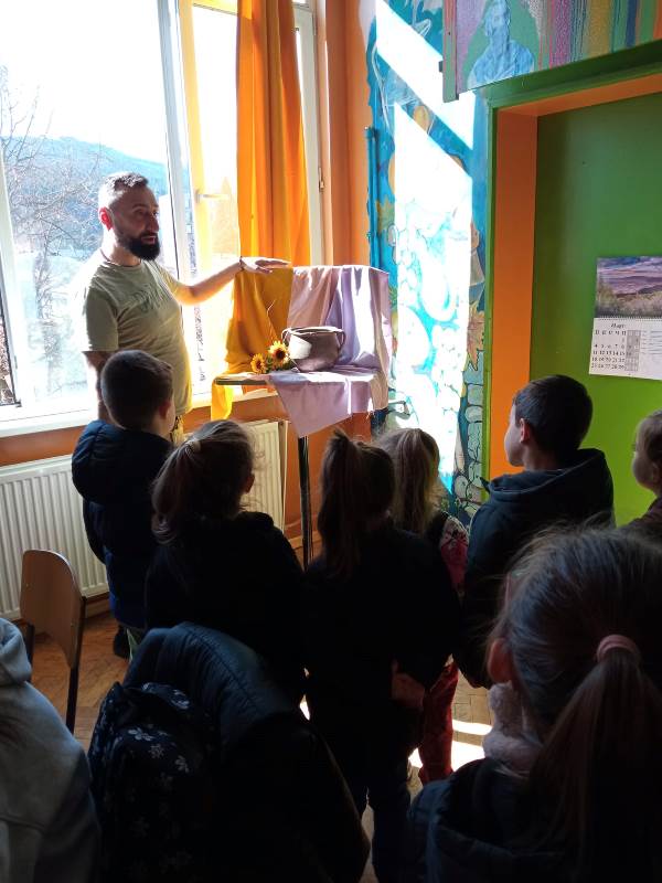 На 20 март 2024 година децата от група "Кокиче" проведоха се срещнаха с Евгени Серафимов /художник и учител/, в изпълнение на проект "Творчеството на децата в заниманията по ОН "Изобразително изкуство" от НП на МОН "Хубаво е в детската градина".