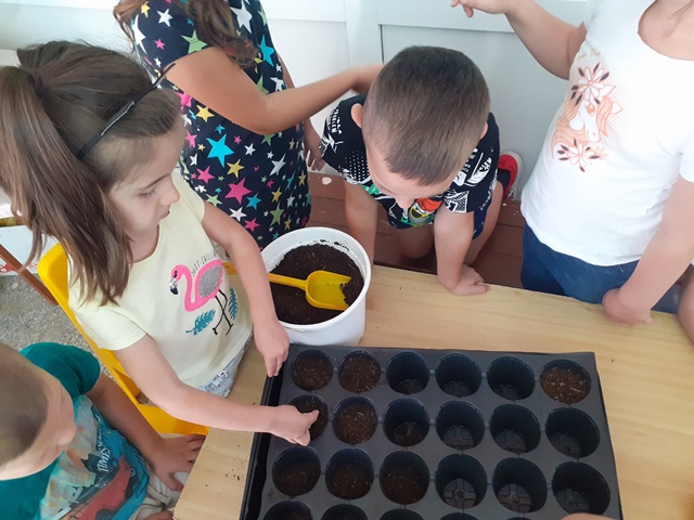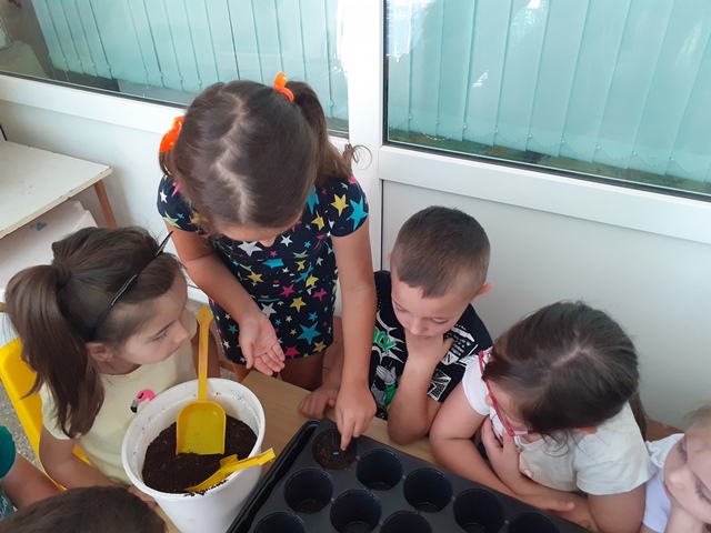 Всяко дете имаше възможност да засади семенце от краставичка, което ще проследим във времето как ще се развива.