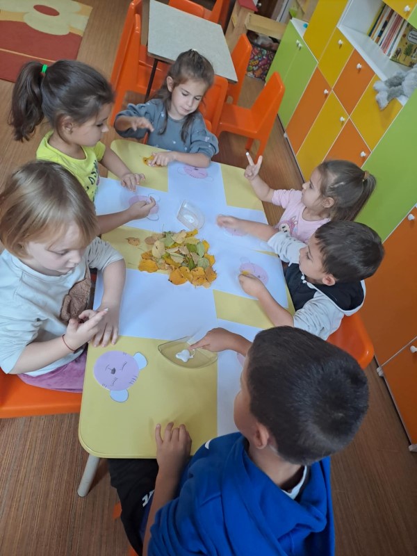В края на октомври 2025 година децата от група "Гъбка"се потопиха в красотата на есента и сътвориха свои цветни апликации от истински листа!
