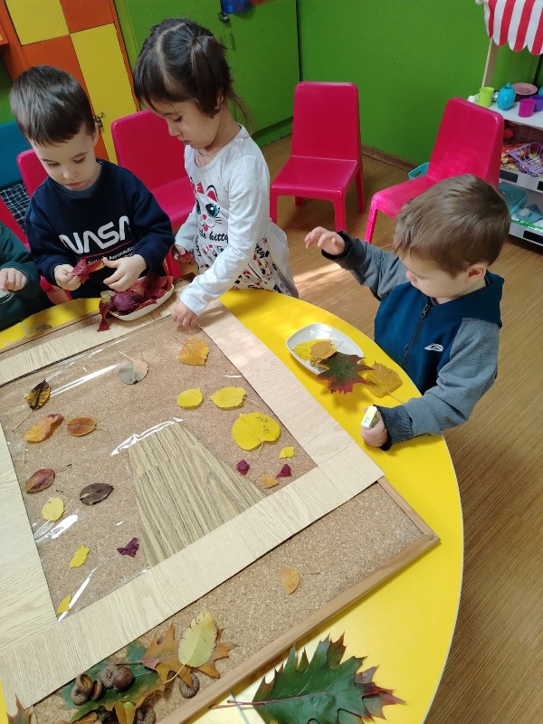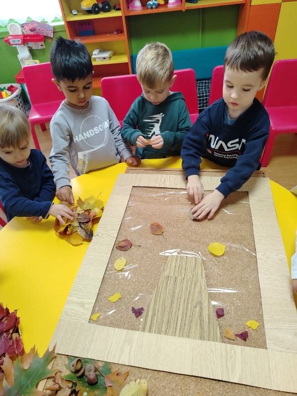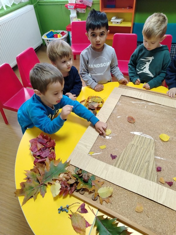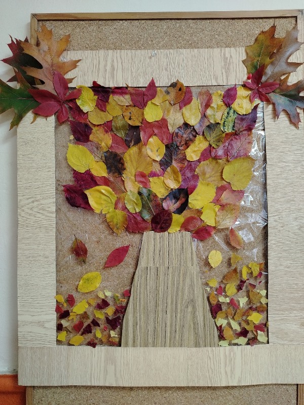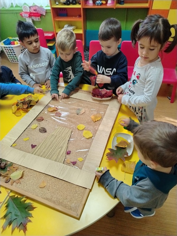 С огромно желание и радост малките кокиченца изработиха пано от есенни листа.