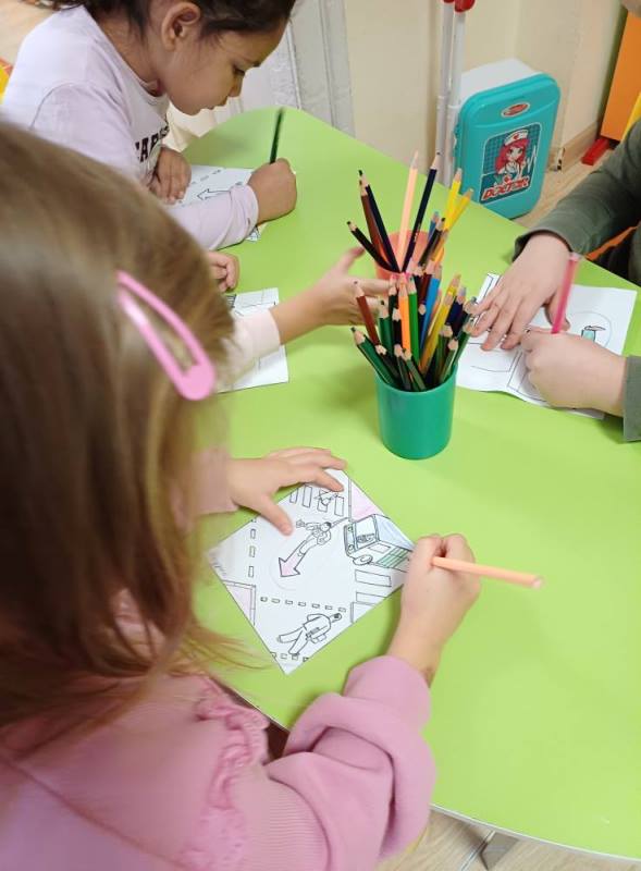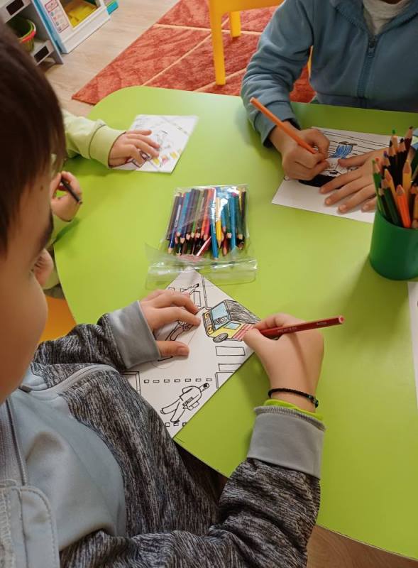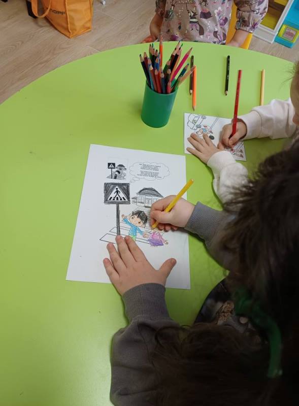 През ноември 2025 организирахме и проведохме творческа дейност с децата от група "Джудже ". Децата рисуваха и оцветяваха светофари и ситуации на пътя, като впоследствие оформиха в групов албум: "Безопасност на пътя".