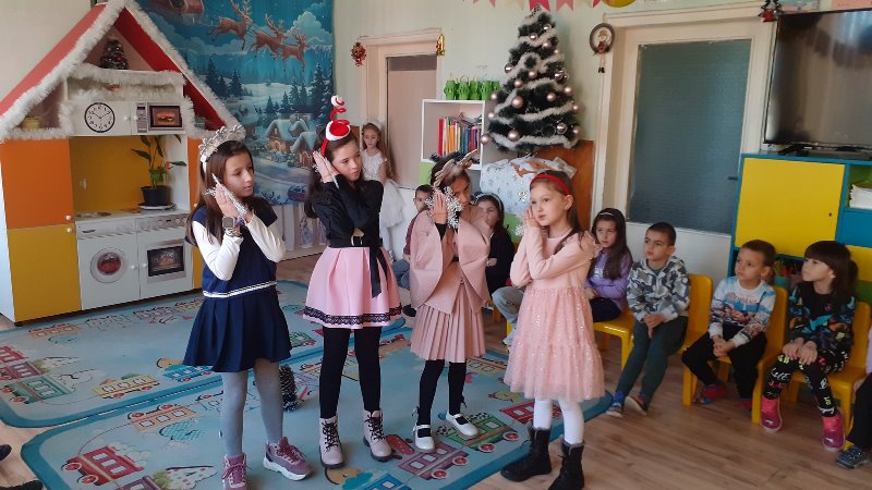 През първата деседневка на месеца в група "Калинка" гостуваха учениците от втори клас на ОУ "Св.Св. Кирил и Методии" .Учениците и техните учителки пресъздадоха Коледна приказка. С артистизъм и много старание малките артисти ни пренесоха във вълшебството на предстоящите коледни празници.