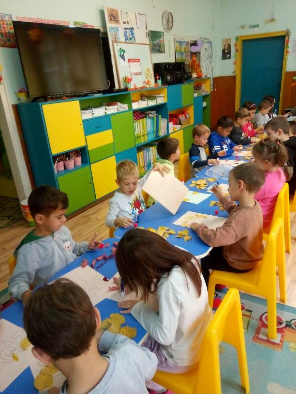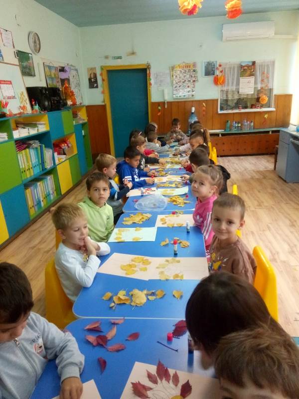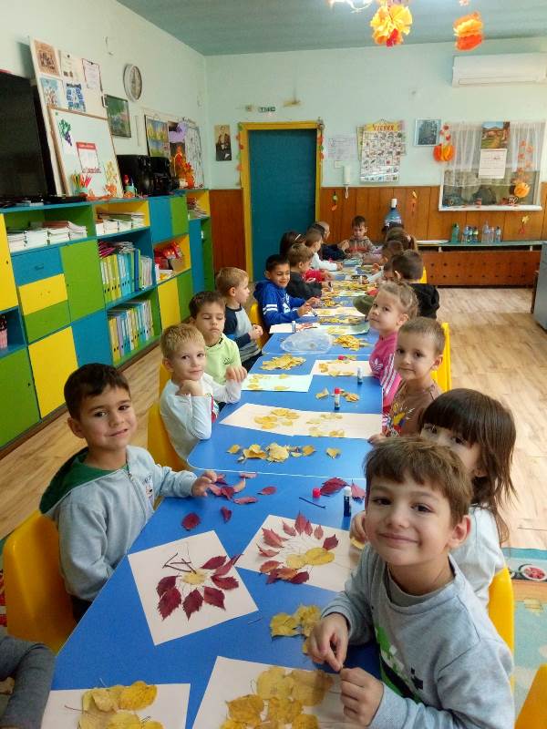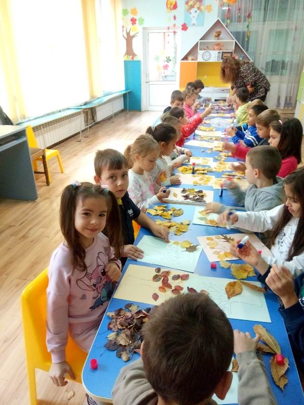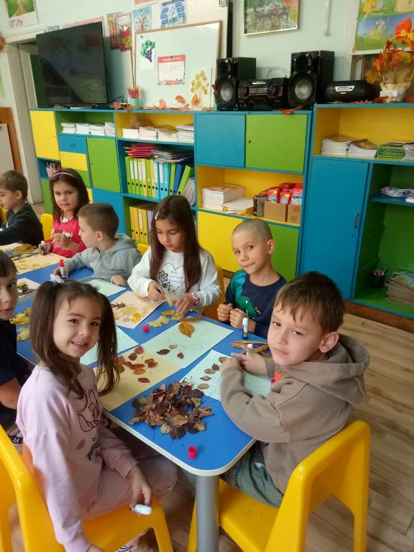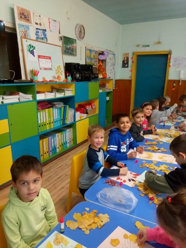 През октомври 2025 година дцата от група "Калинка" с голямо желание и ентусиазъм събраха есенни листа и направиха пъстри дървета.Те научиха колко щедра е есента и как ни дарява с плодове, зеленчуци и много красиви багри.